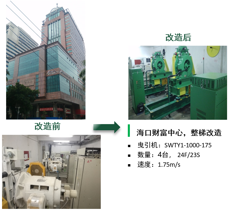 ◦ Environmentálna prívetivosť: Renovácia si zachováva existujúce komponenty v hriadeli výťahu, ako sú vodiace koľajnice, nárazníky a protiváhy,ušetrí v priemere viac ako 6 ton ocele na výťah. Prijatie plne počítačového riadenia mikropočítačov a synchrónnych trakčných strojov na permanentné magnetyznižuje spotrebu energie približne o 50% alebo viac.