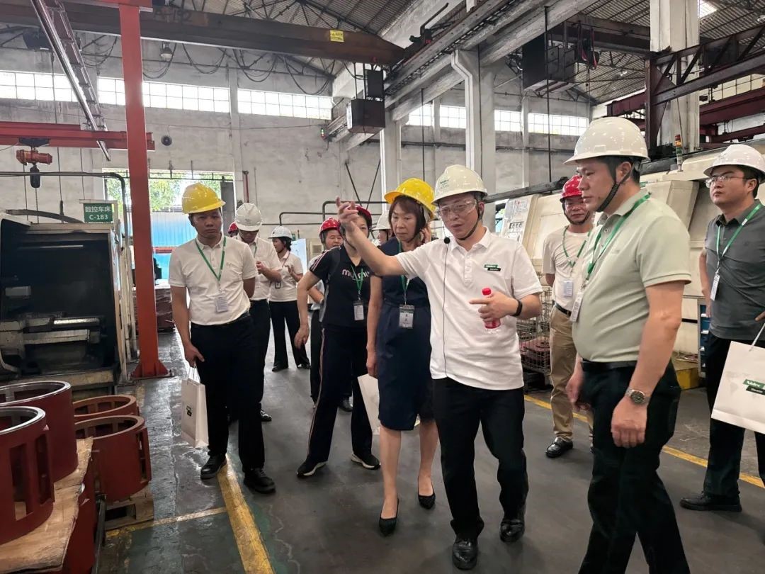 Po kole diskusií tím NIDEC Elevator viedol hosťujúcich predstaviteľov k vytvoreniu skupín, nasadil bezpečnostné prilby, vstúpil na modrý priechod a navštívil inteligentný workshop na výrobu motorov.