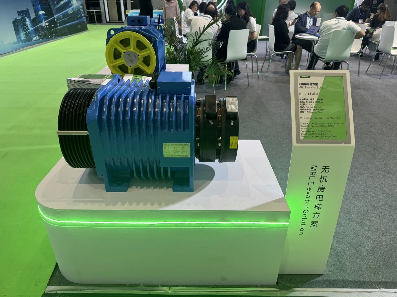 Okrem toho tento WEE priniesol aj najpredávanejší zámorský stroj sudového typu série WR-D. Kompaktný dizajn efektívne stláča výšku produktu a štíhla konštrukcia spĺňa potreby prísne náročných projektov na najvyššej úrovni. Pre WR-D je maximálna nosnosť 1600 kg a najvyššia rýchlosť výťahu je 2,5 m/s s rozmerom kladky 400 mm.